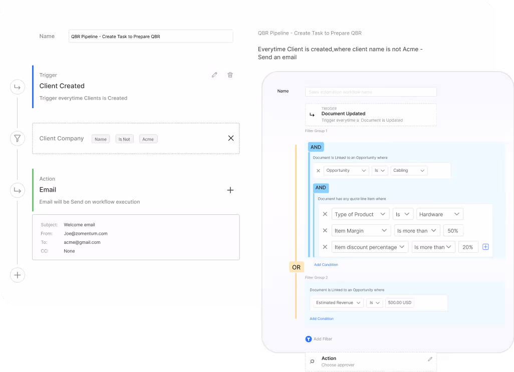 With Zomentum, you can add images or notes to your proposals that details the reasons for your sales. You can also include merge tags and set up workflows for automated, personalized follow-ups.