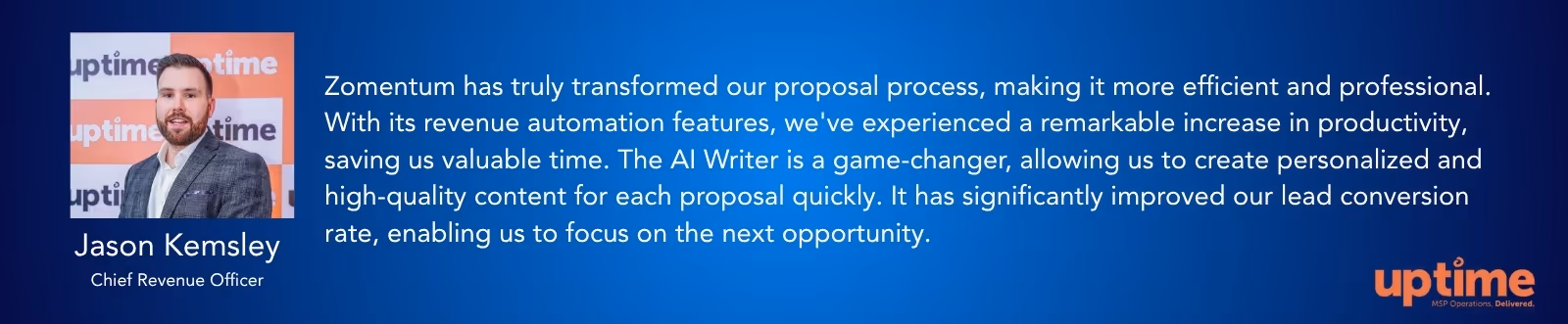 This blog is from Zomentum but hear us out. Unlike other traditional tools. Zomentum is purpose built for MSPs, offering an all in one sales platform that does more than just proposals. Zomentum helps you move from a chaotic quoting sales tool to an AI module tool with 40+ Integrations, and that’s why so many QuoteWerk users are making the switch.