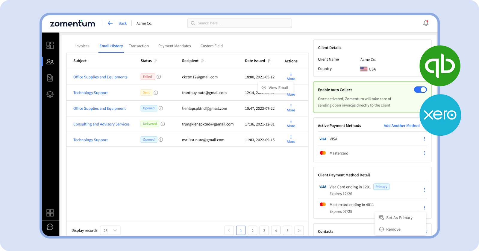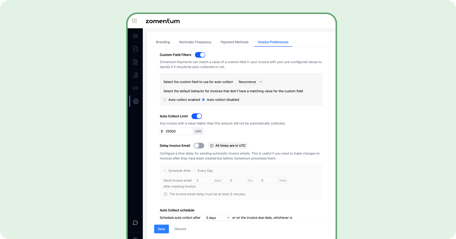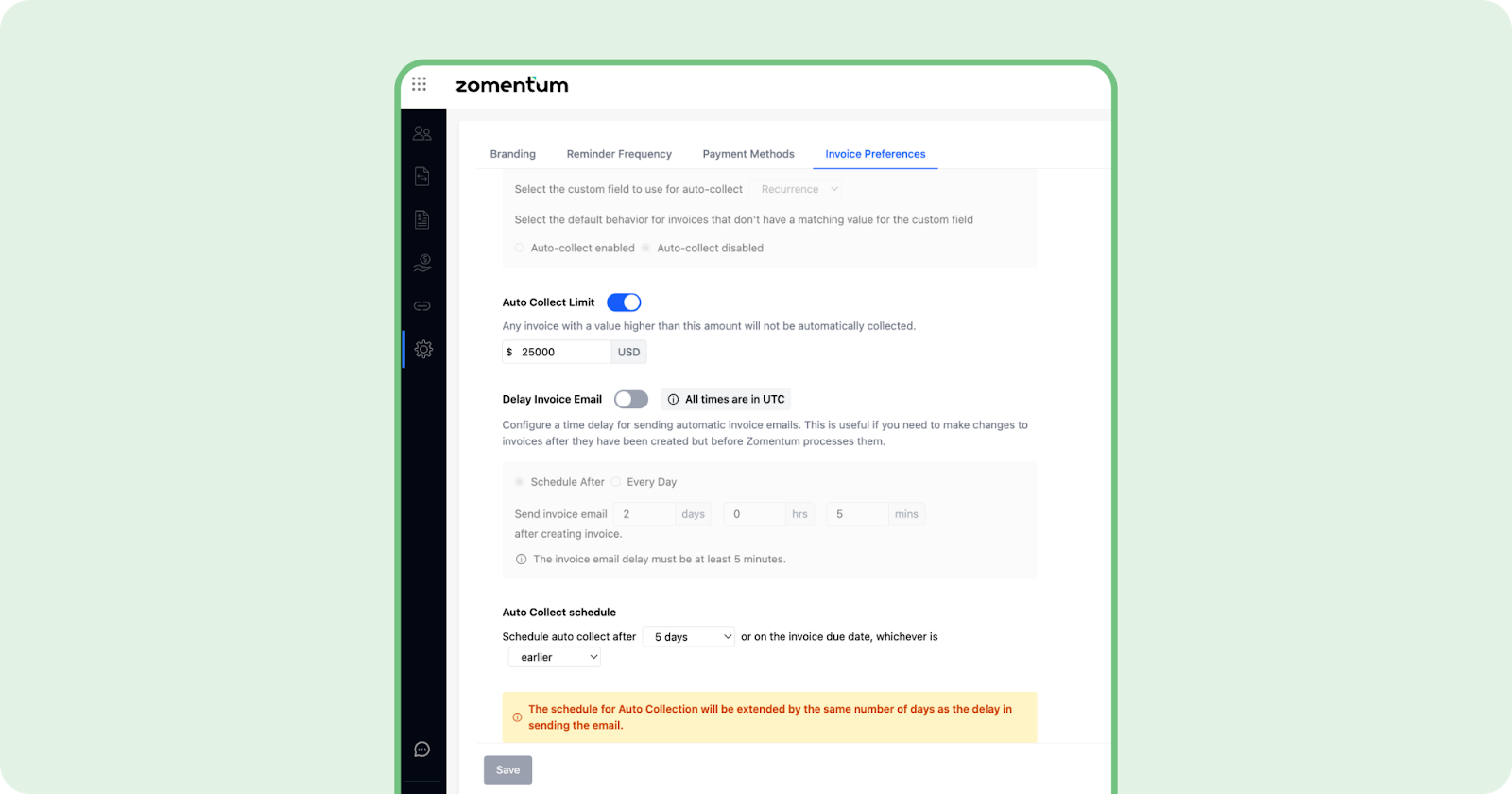 Zomentum Payments fully supports autopay by a set number of days based on the invoice type or client tier.