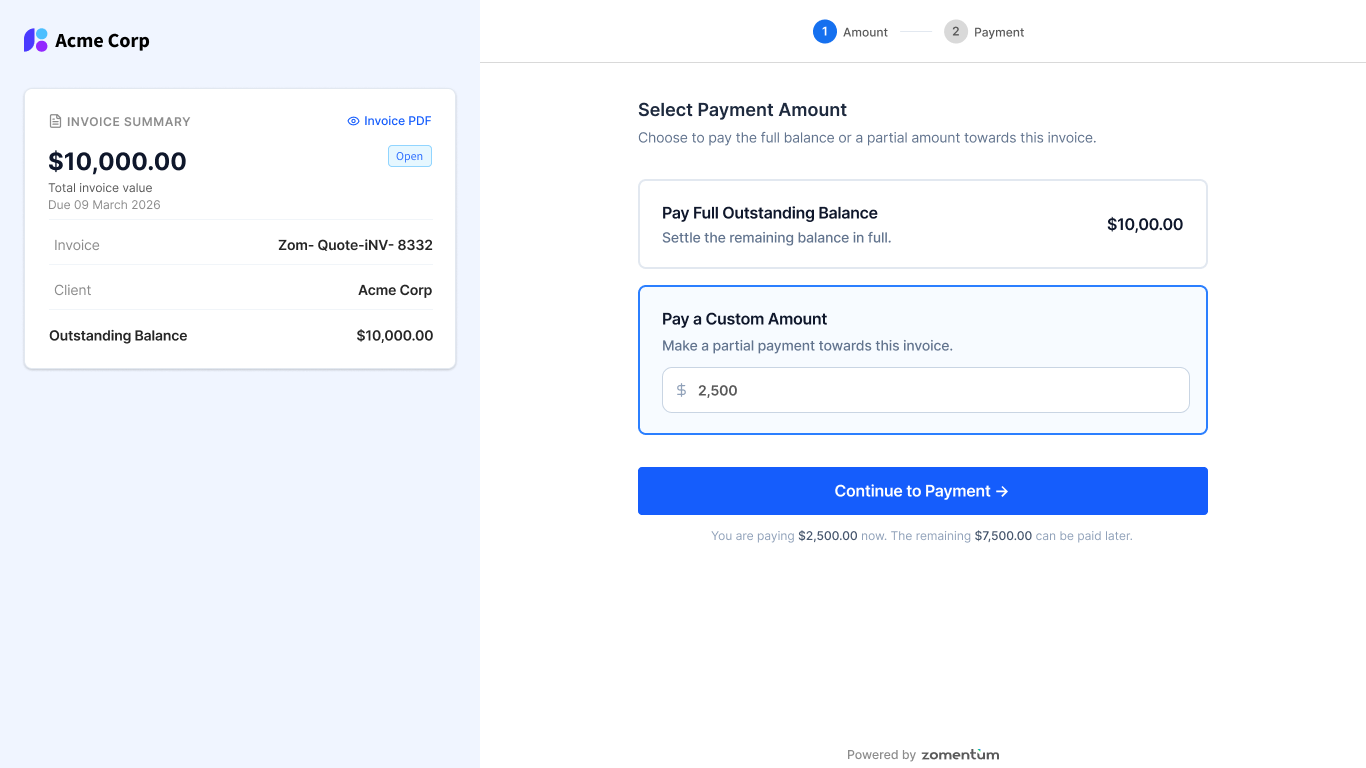Zomentum Payments is built natively into the Zomentum platform, meaning the payment workflow, the document workflow and the CRM live in a single environment. Reconciliation, refunds and chargebacks are managed in one place. That’s not just a convenience, it reduces the operational overhead that quietly eats into your margins.