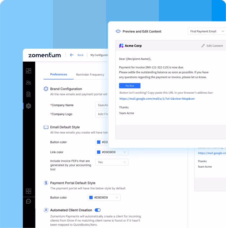 Customize every payment-related email so clients get clear, consistent communication from your brand.