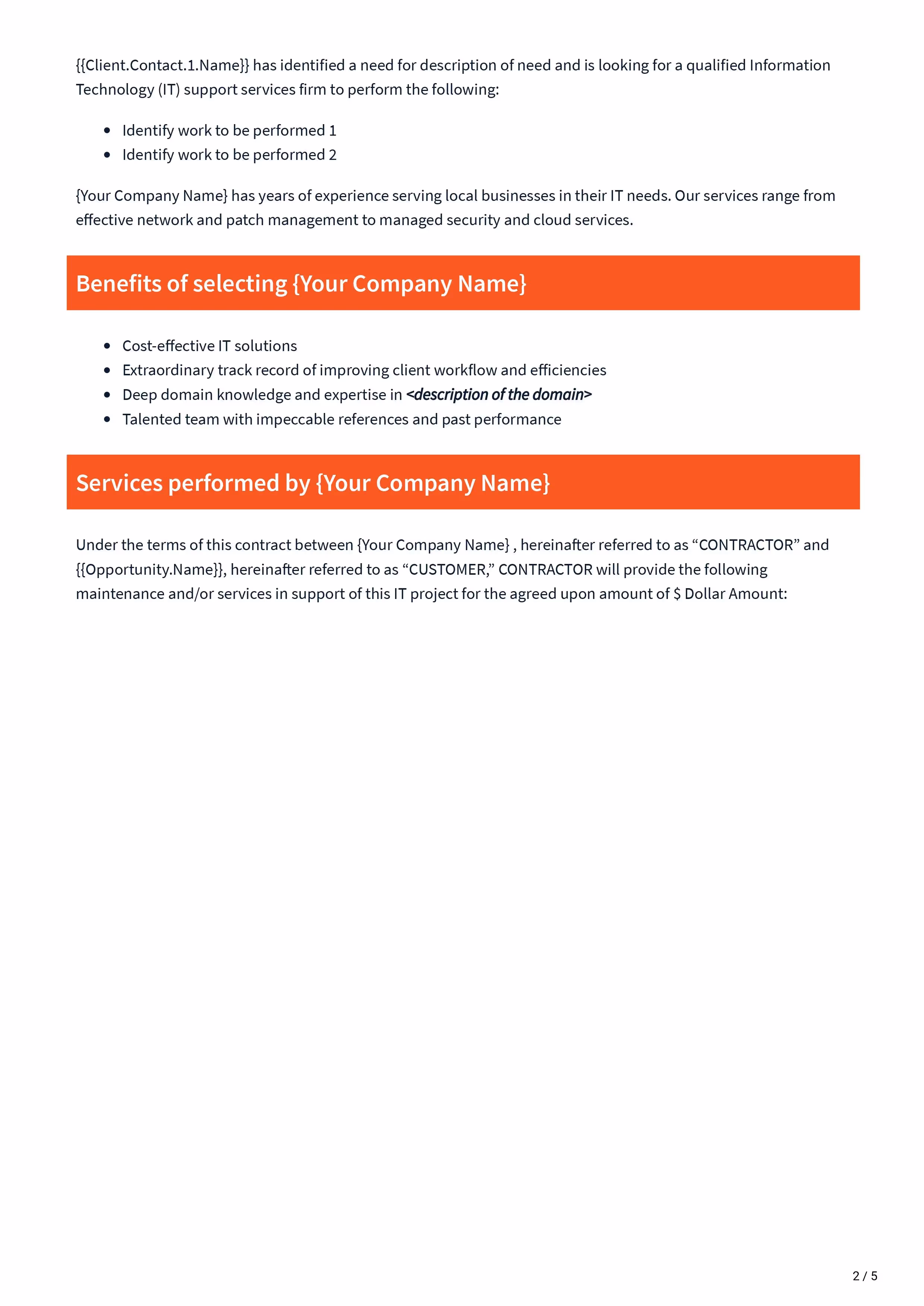 Win over potential clients with our comprehensive IT Support Contract Template. Ensure legal compliance and provide detailed service offerings and pricing information.