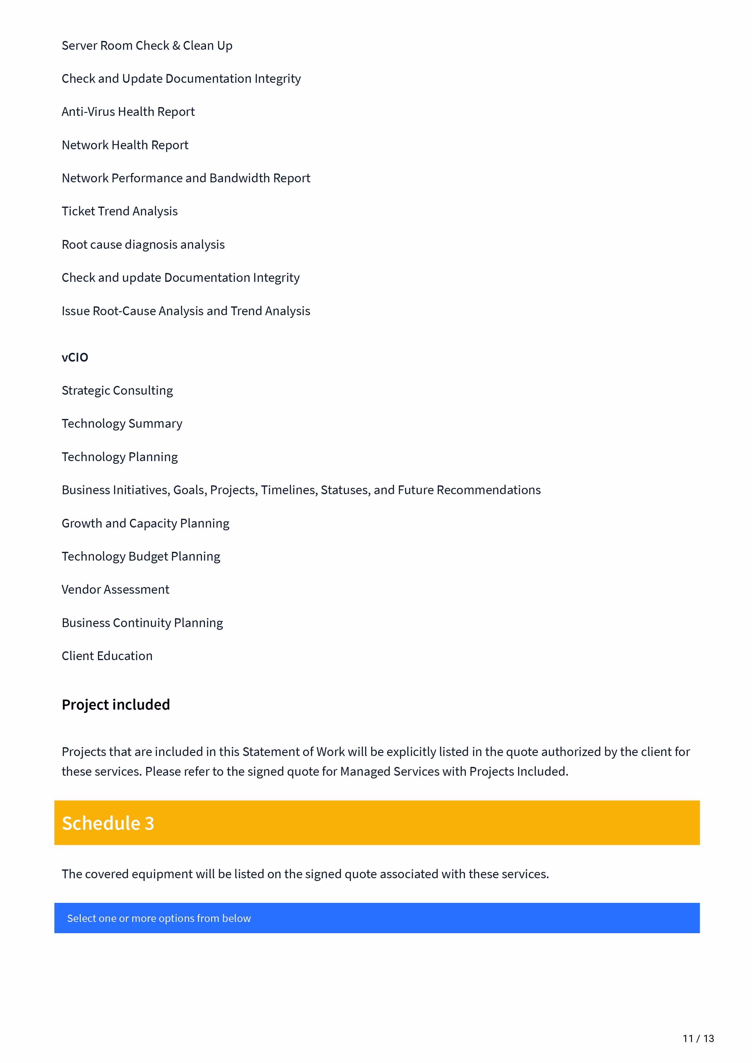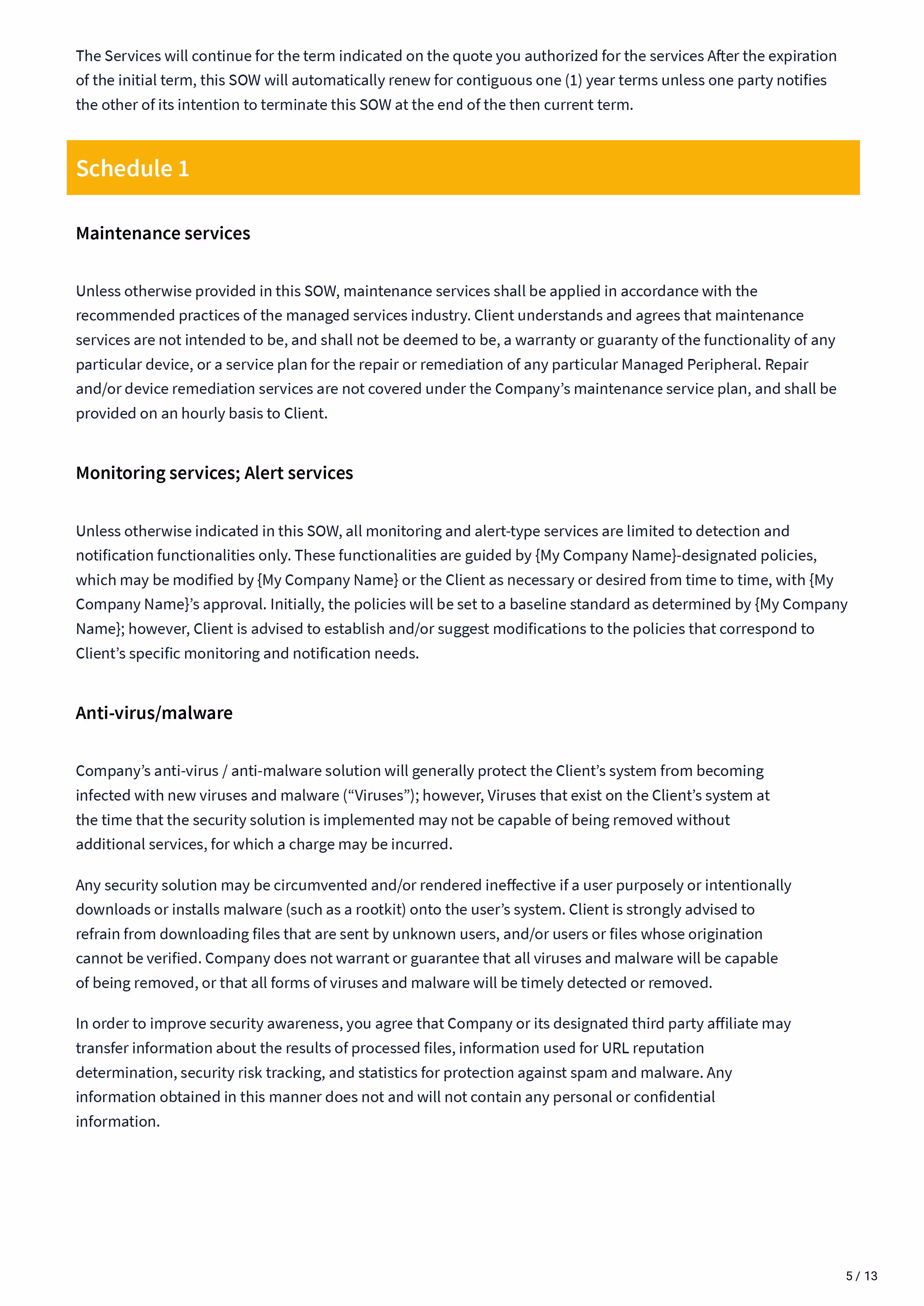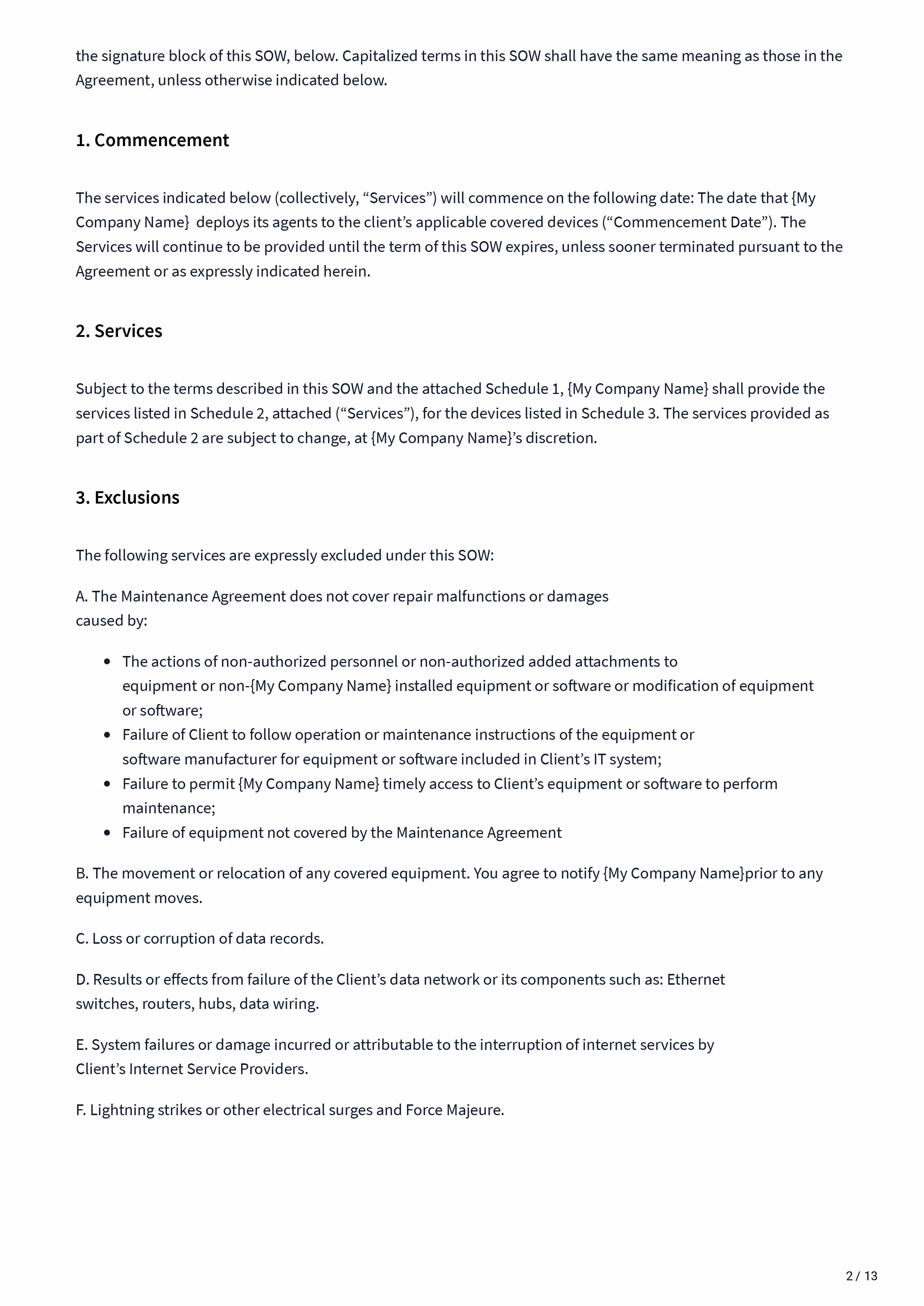 Managed Services Statement of work - Sow Template covers: