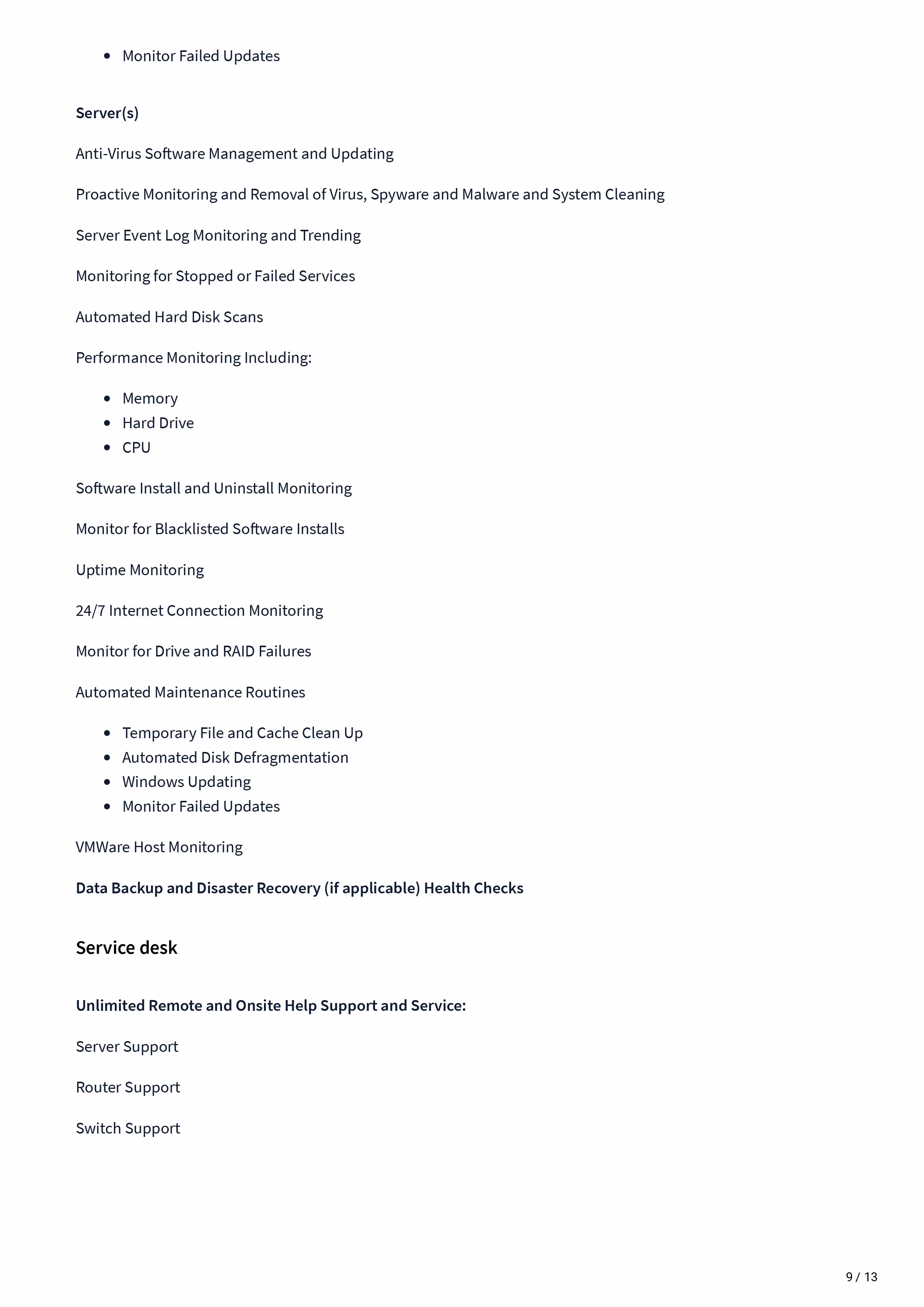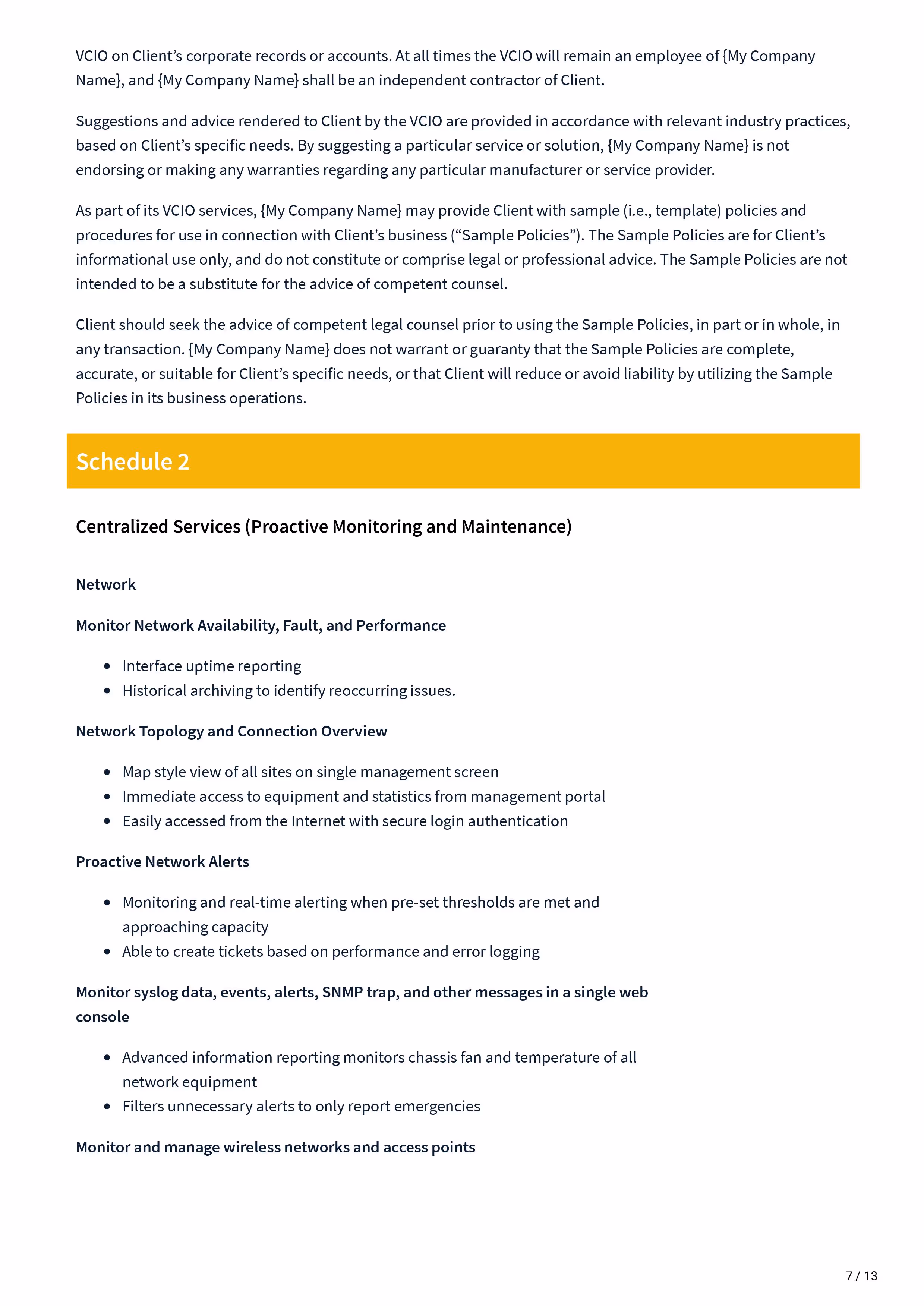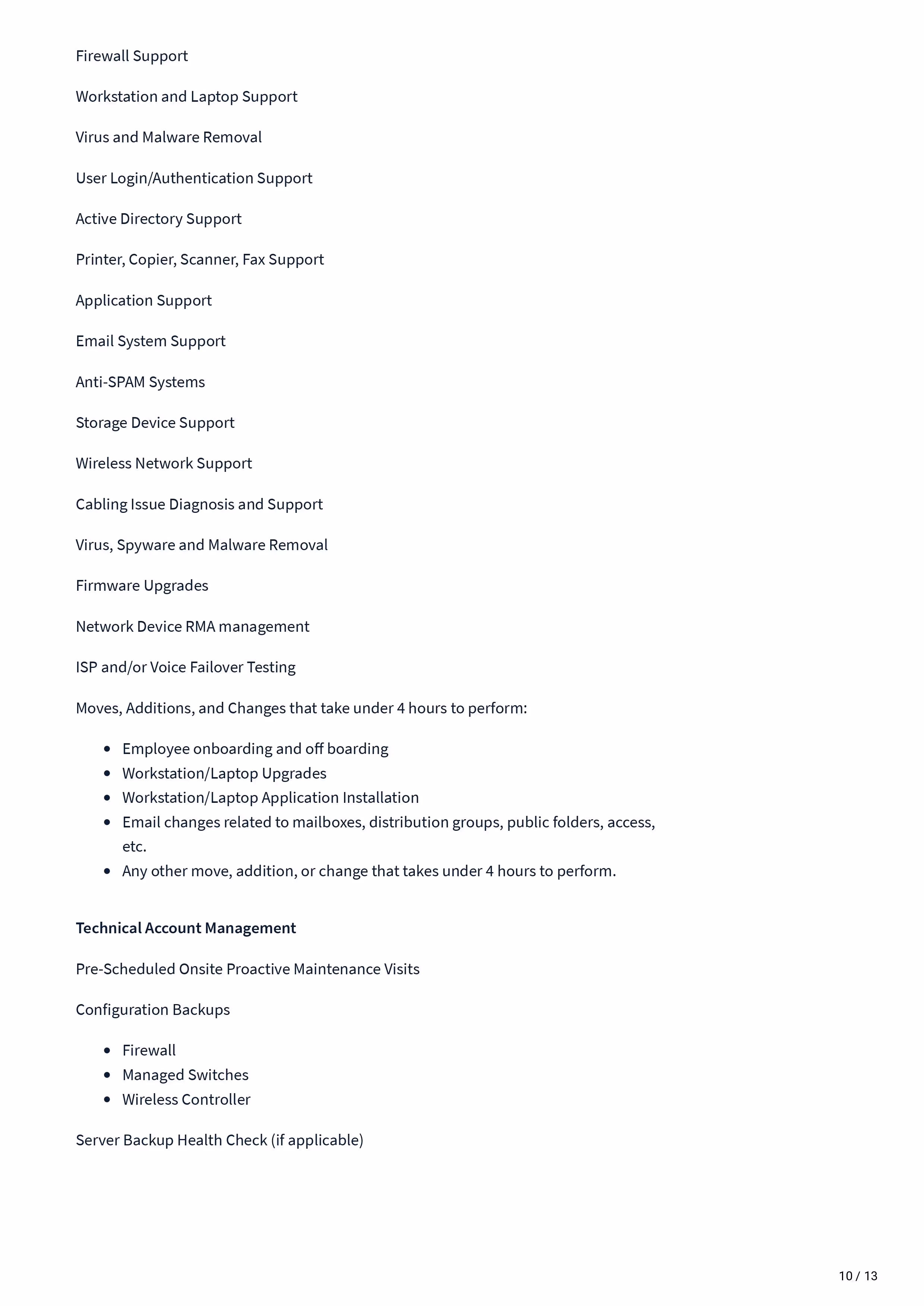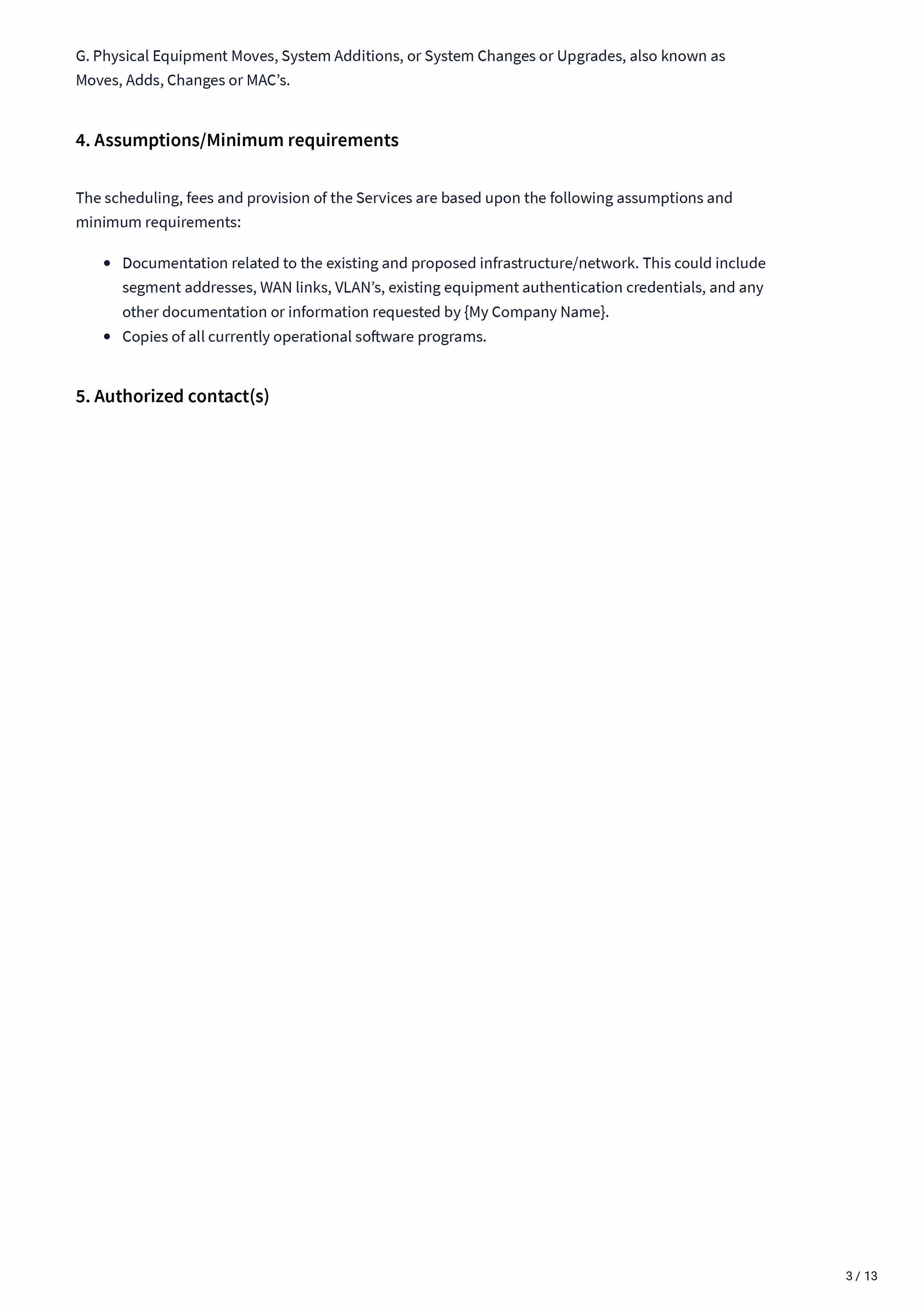 Managed Services Statement of work - Sow Template covers: