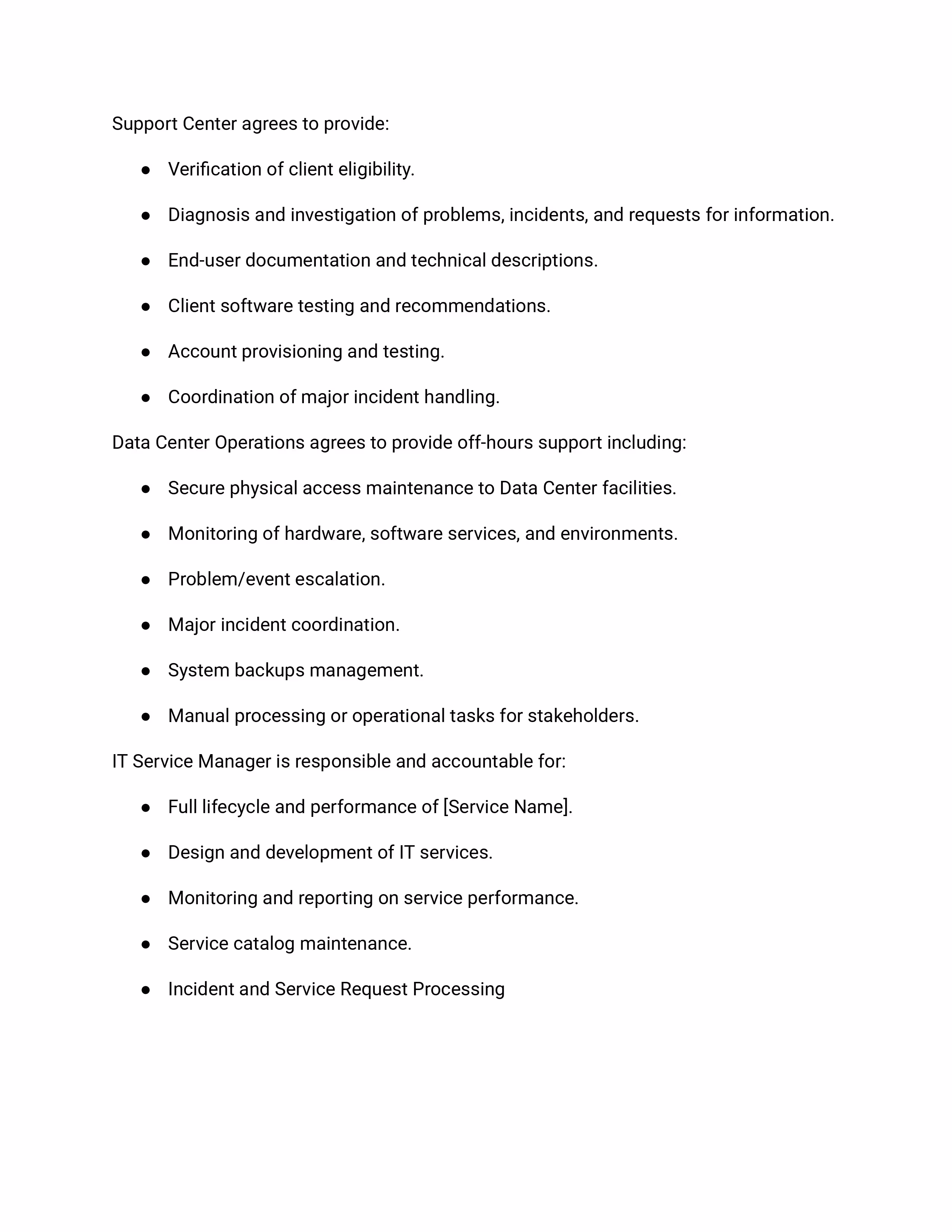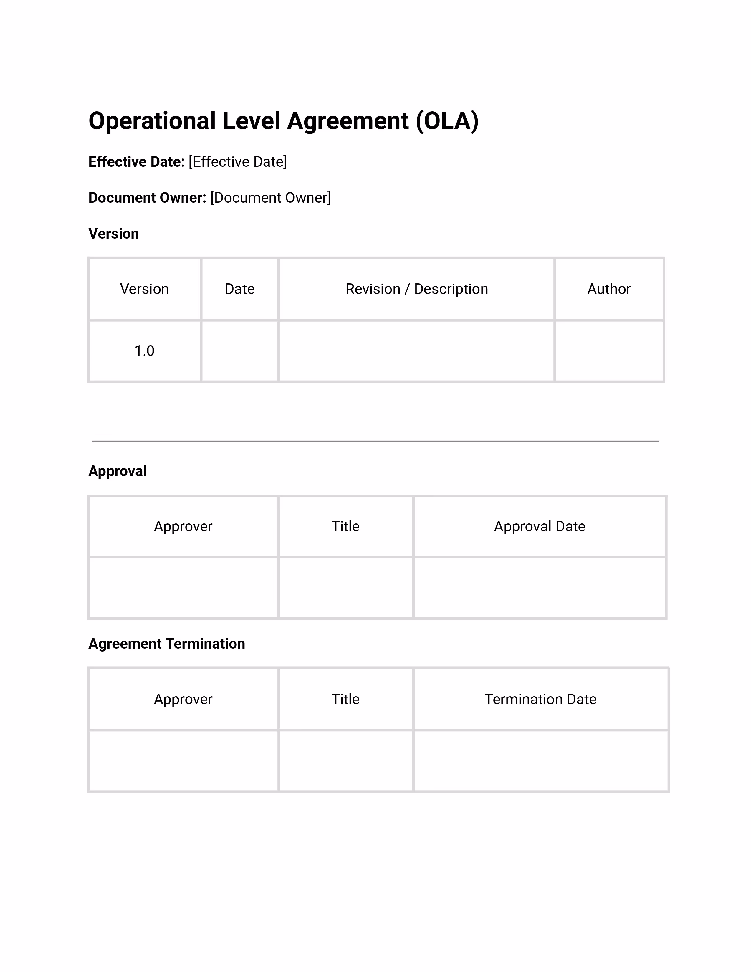 Operational Level Agreement Template