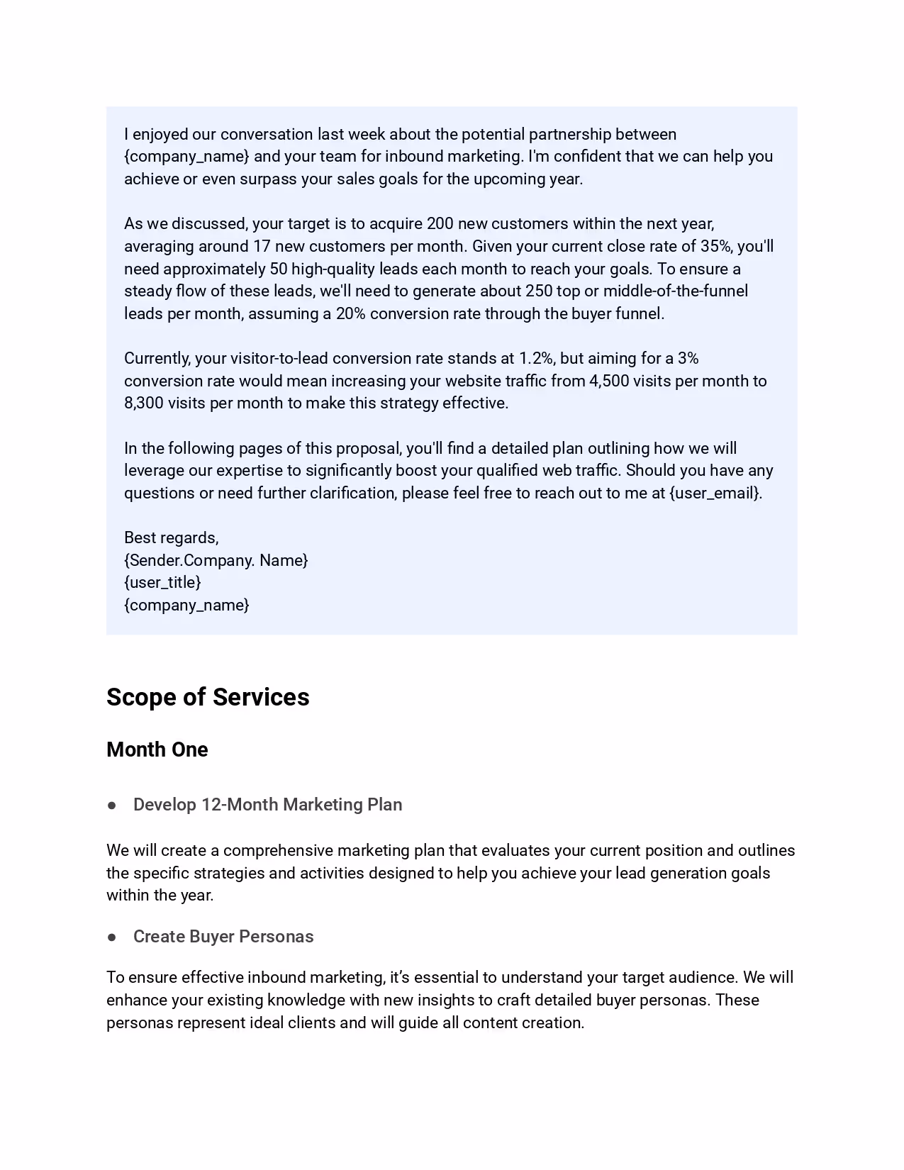 Our inbound marketing proposal template comes with a pre-structured layout that enables you to craft professional proposals in no time.